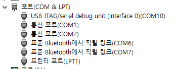 포트에 COM10으로 잡혀있네요. PC마다 다르지만 어찌되었뜬 COMx 에 잡혀있으면 일단 OK